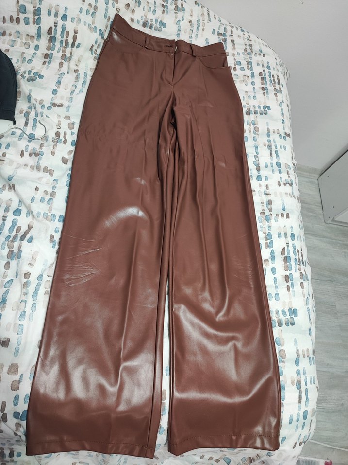 Kadın Kahverengi Deri Pantolon