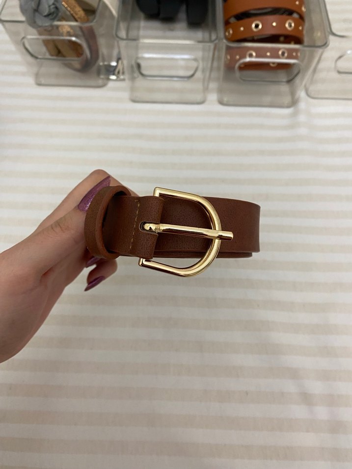 Kadınlar için kahverengi deri kemer, altın tonlu tokası ile sade ve temel sokak stili sunar. Koyu kahverengi rengiyle şık bir dokunuş sağlar. Sorunsuz kullanmadım