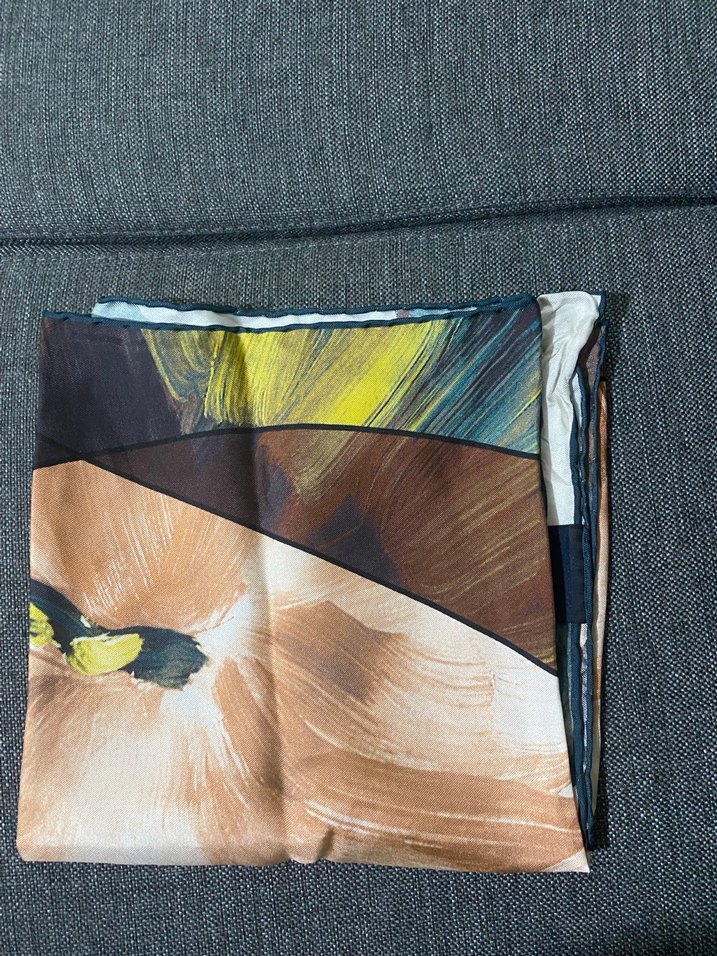 Kadınlar için kahverengi ve gri tonlarda, sentetik kumaştan drapeli tasarıma sahip çağdaş, avangart tarzda eşarp/fular