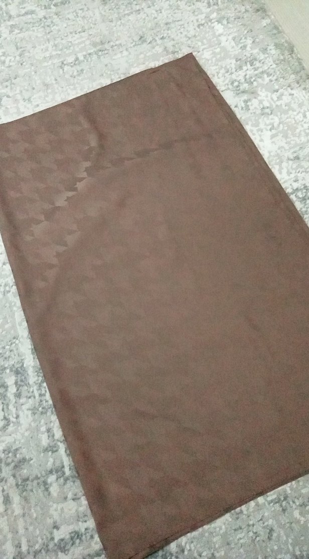 Kadınlar için kahverengi renkte, dökümlü tasarıma sahip, sentetik kumaştan yapılmış şal. Minimalist ve klasik tarzda.