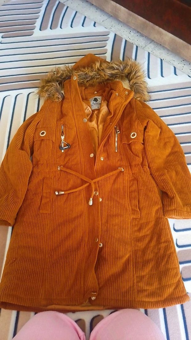 Kadınlar için uzun kollu, düğmeli, kahverengi parlak renkte, midi boy, bol kesim streetwear kaban. Sıcak tutan yumuşak kumaştan üretilmiştir.