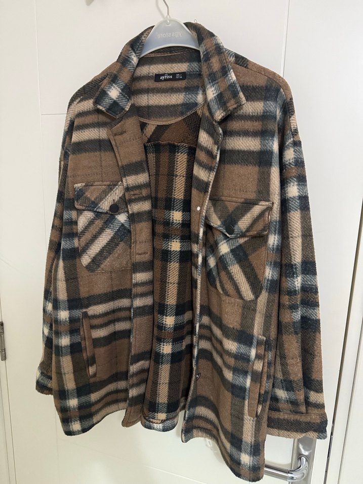 Kahverengi ekose desenli, düğmeli ve cep detaylı uzun kollu bol kesim gömlek. Yumuşak ve sıcak dokusuyla günlük kullanıma uygundur.