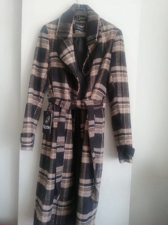 Kadınlar için kahverengi ekoseli uzun kaban, yakalı ve kemerli tasarıma sahiptir. Yumuşak ve sıcak kumaştan üretilmiş, rahat kesimli ve uzun kolludur. Günlük kullanım için uygundur.