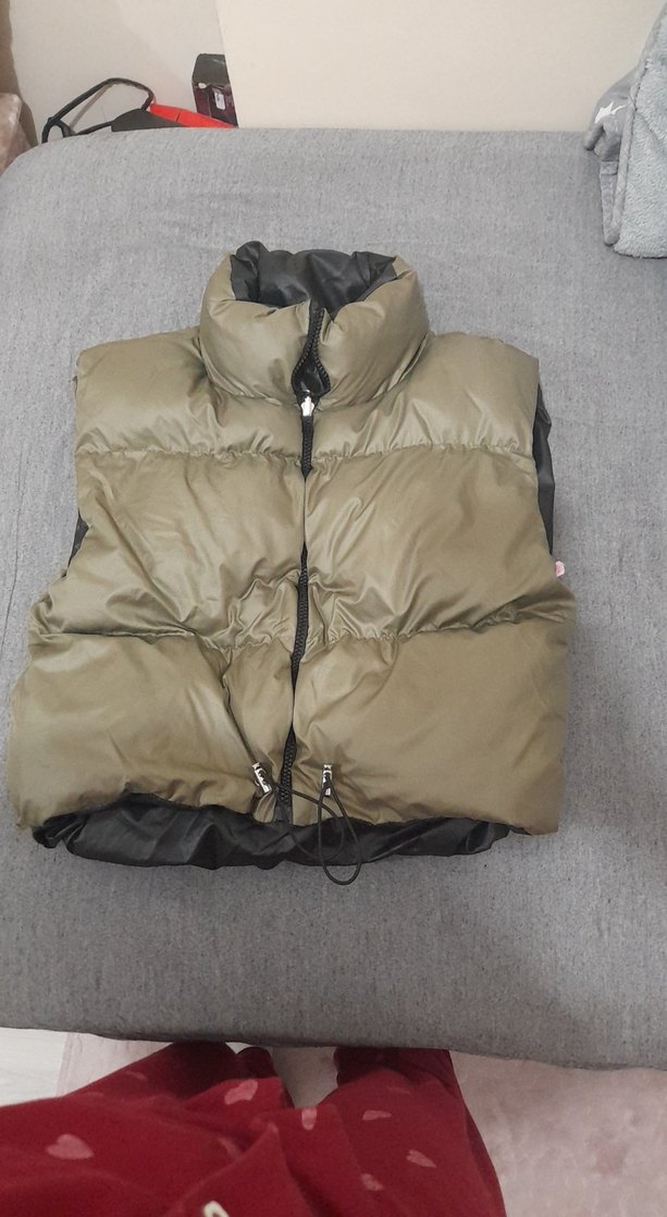Kadın Kahverengi Fermuarlı cift tarafli Şişme Yelek sıfır ürün