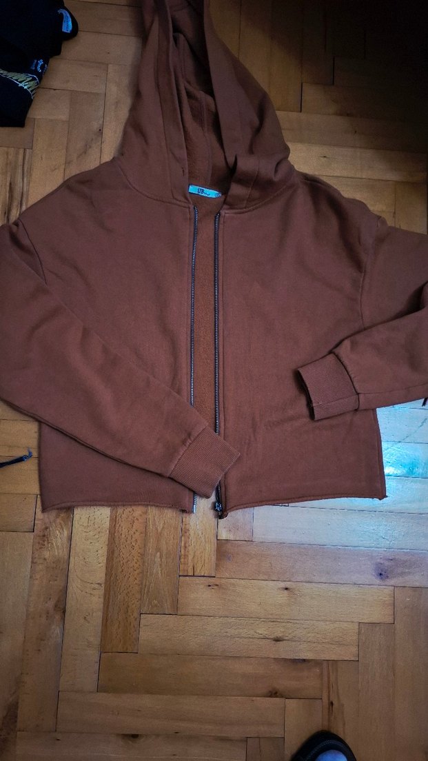 Kadın kahverengi fermuarlı sweatshirt, uzun kollu ve bol kesimdir. Yumuşak kumaştan üretilmiş, bisiklet yaka ve normal boydadır. Günlük rahat sokak stili için uygundur. Boy 5cm, en 46 cm .Hafif esnek polar.