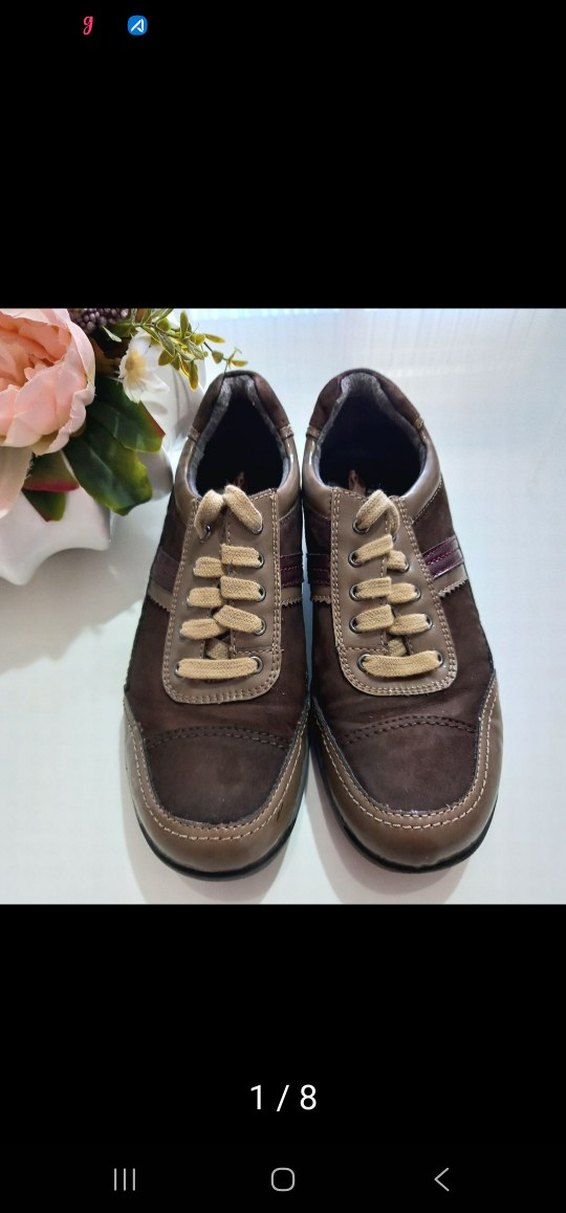 Kahverengi günlük kadın ayakkabısı, gri detaylar ve bej bağcıklarla sokak tarzını yansıtır. Ortopedik ve konforludur.
