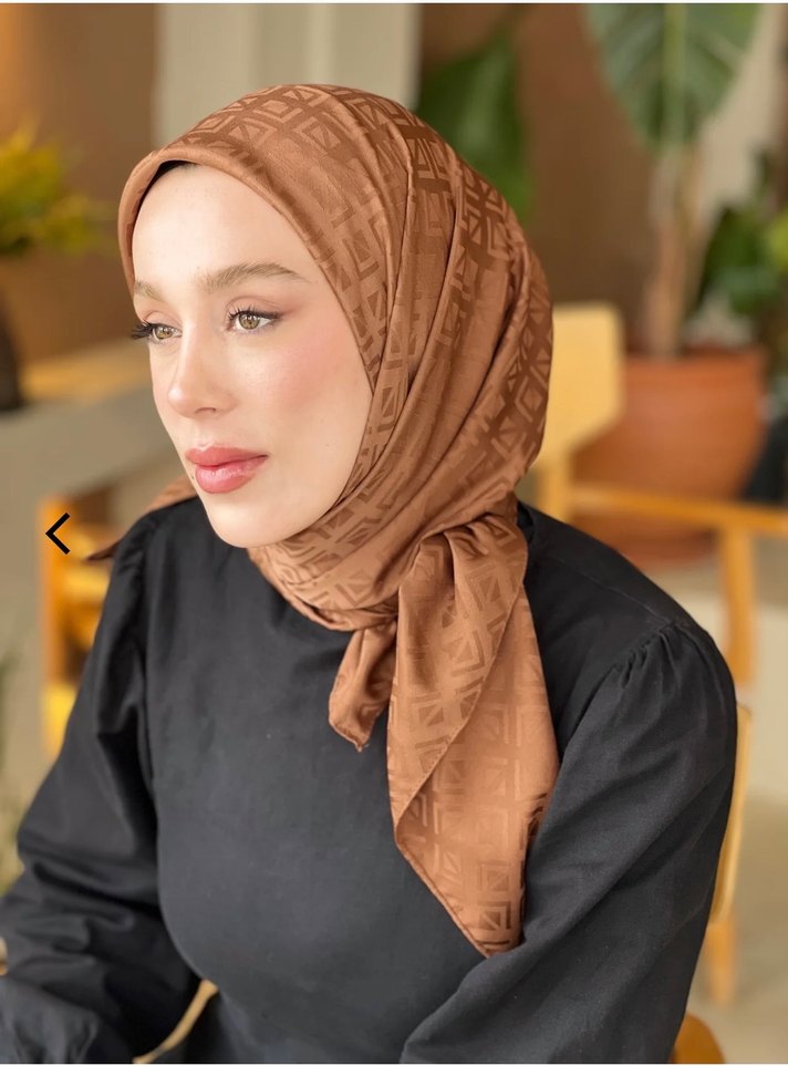 Kadın Kahverengi İpek Dokulu Jakar Eşarp