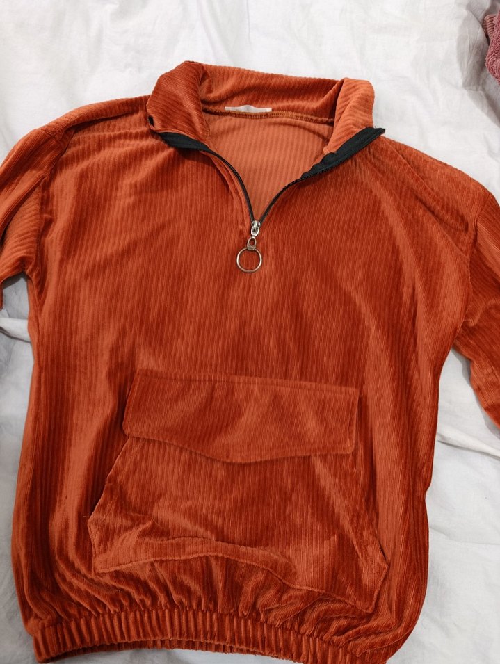 Kadın Kahverengi Kadife Yarım Fermuarlı Sweatshirt