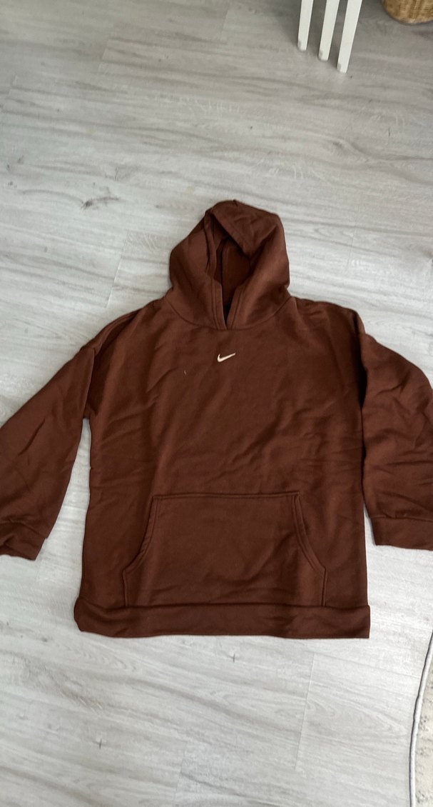 Bu kahverengi kapüşonlu sweatshirt, bol kesim, uzun kollu ve ön cepli, yumuşak ve sıcak kumaştan yapılmıştır. Günlük kullanım için rahat ve şık bir seçenektir. Boy 64 cm iki kol arası 61 cm dir