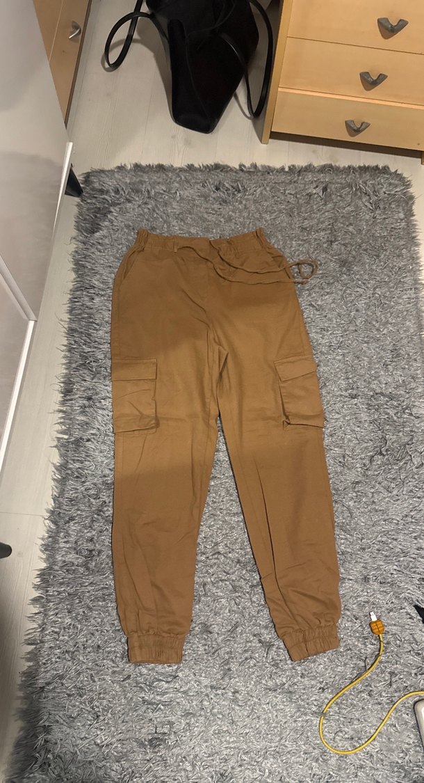 Kadınlar için kahverengi pamuk kumaştan, kemerli, rahat kesim midi boy pantolon. Desensiz, günlük kullanıma uygun.kadıköyde bi butikten almıştım hiç giymedim