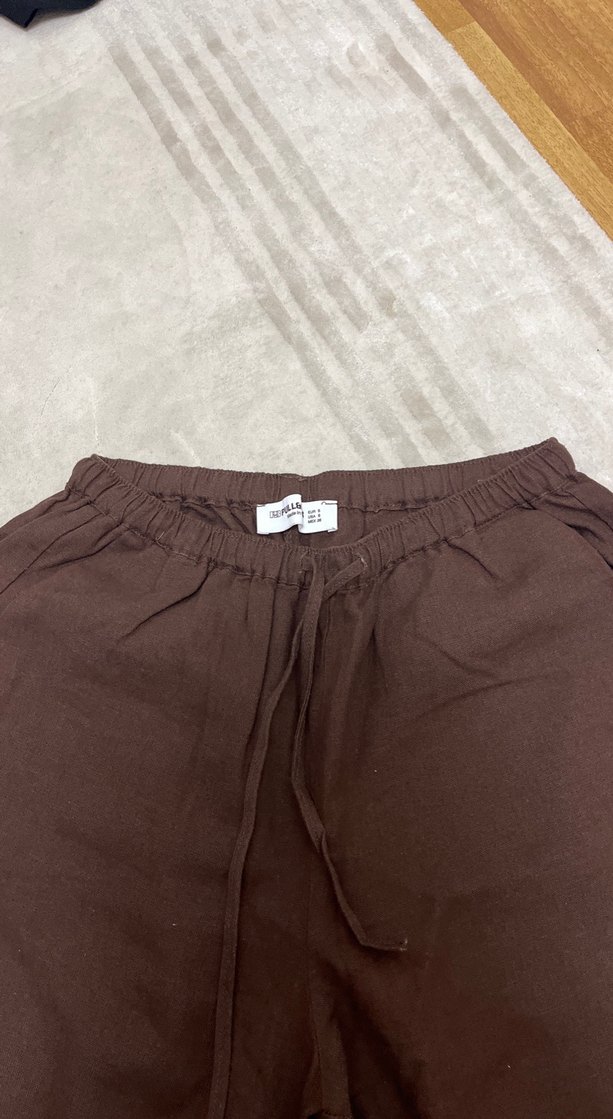 Kadın Kahverengi Keten Bol Kesim Pantolon