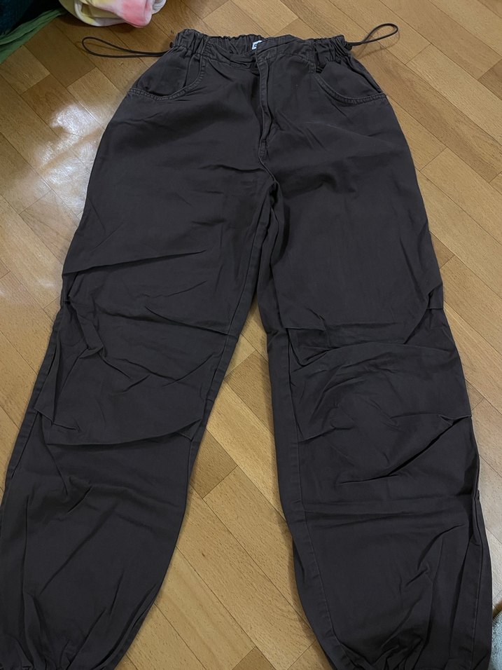 Kahverengi keten kumaştan, salaş kesim ve normal midi boy pantolon. Dış mekanlar için rahat ve şık bir tercih. paça ve bel kısmı lastikle ayarlanabilir