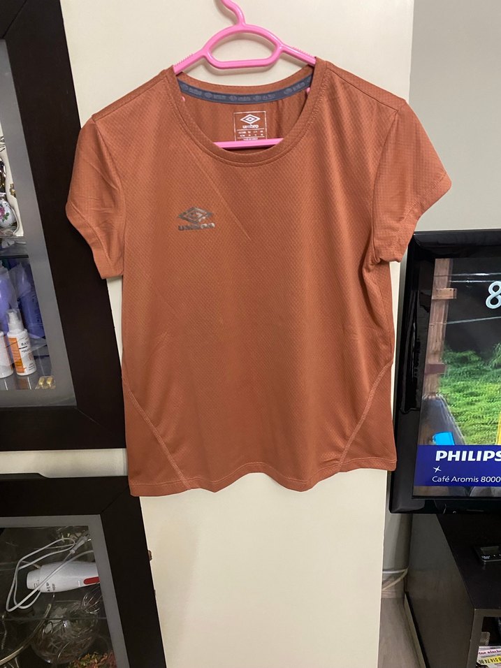 Kadın kahverengi kısa kollu tişört, rahat kesim ve yuvarlak yaka ile, yumuşak sentetik kumaştan üretilmiştir. Günlük sokak stiline uygundur.