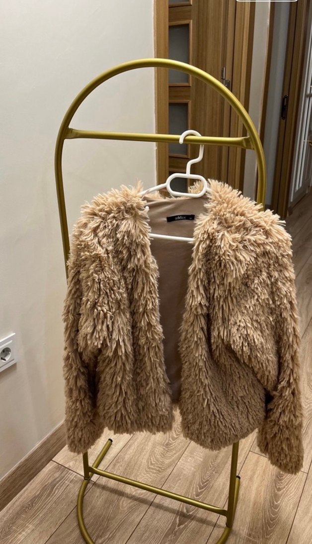 Kadınlar için kısa, kahverengi suni kürk mont. Yumuşak, kürk detaylı ve bol kesimdir. Notlu yaka ve uzun kolludur, günlük kullanıma uygundur.