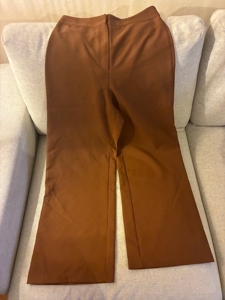 kahverengi kumaş pant popoya oturuyor ama bacakları ve paçaları bol ve kısa bilekte bitiyor 158 55kg