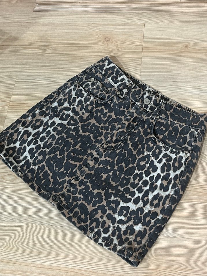 Kahverengi Leopar desenli, bol kesim mini etek. Sentetik kumaştan, kürk detaylı, kot,rahat ve şık sokak giyimi için uygun.