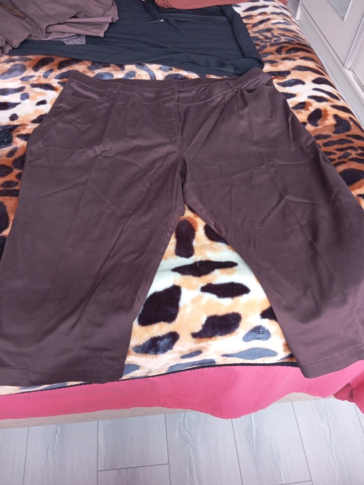Kadınlar için kahverengi, mini uzunlukta, rahat kesim sentetik kumaştan yapılmış, sokak stiline uygun şık kumaş pantolon.