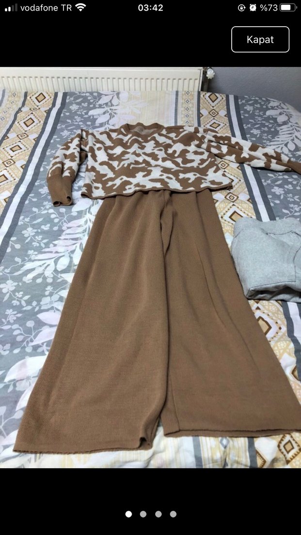 Kadın Kahverengi Örgü Salaş Pantolon