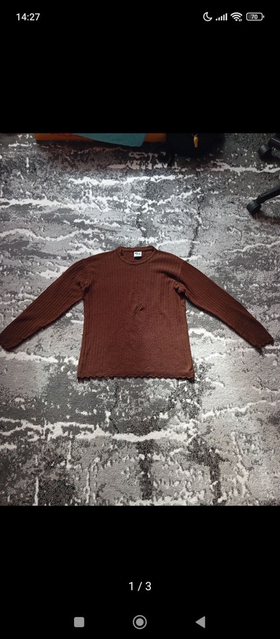 Bu kahverengi kadın kazak, salaş kesim ve yuvarlak yaka ile tasarlanmıştır. Yumuşak örgü kumaştan örülmüş, rahat ve gündelik kullanıma uygundur. Uzun kollu ve normal midi boydadır, desensizdir.