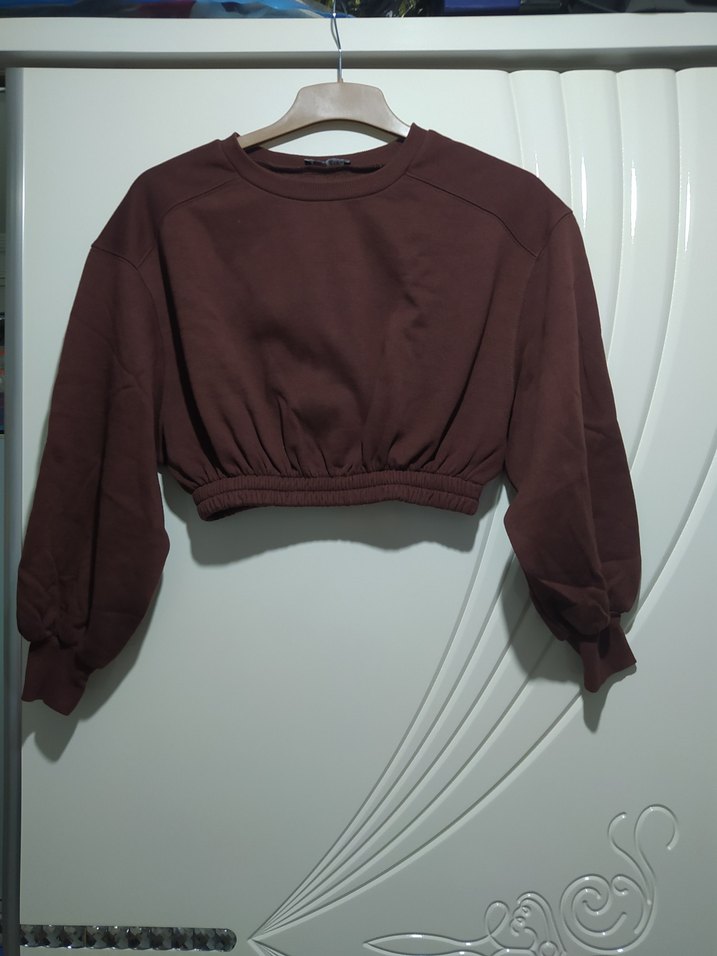 Kadın kahverengi, yuvarlak yaka, uzun kollu, bol kesim ve crop boy sweatshirt. Sentetik kumaştan üretilmiştir, günlük kullanıma uygundur. hmn kargo yapıyorum iade kabul etmiyorum sorarak alım yapın lütfen