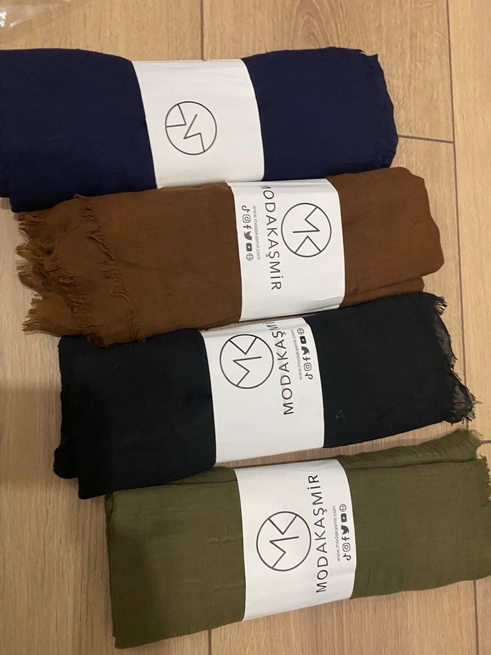 Kadınlar için pamuklu, koyu kahverengi renkte bohem tarzda, püsküllü kenarlarıyla rahat ve şık bir şal. Üzerinde 'MODAKASMiR' etiketi bulunur. Marka temsili