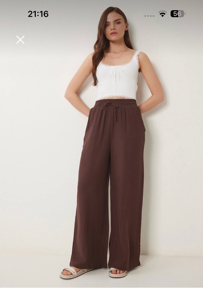 Kadın Kahverengi Pamuklu Müslin Salaş Pantolon