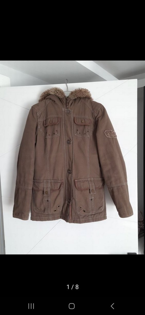 iç cepli, içi ve şapkası kürklü, cepli kahverengi parka. arka alt kısmında ufak bir leke var fotoğraflarda belirttim başka bir kusuru yoktur