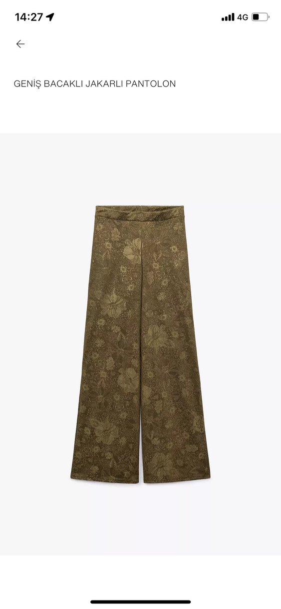 Kahverengi, midi boy, regular fit, kemerli kadın pantolon. İnce çiçek desenli parlak ve ipeksi kumaştan üretilmiştir.