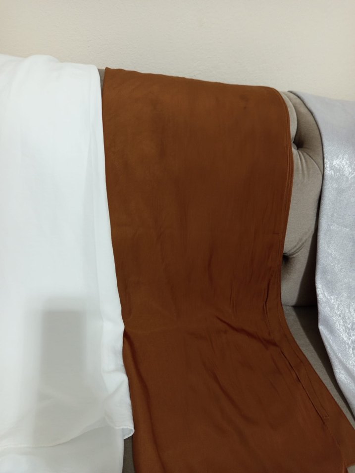 Kadınlar için kahverengi parlak sentetik kumaştan, drapeli ve minimalist çağdaş stile sahip şal.