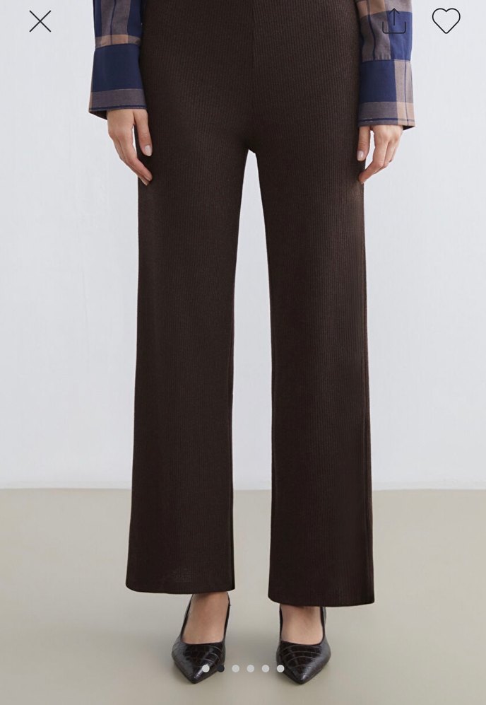 Kadınlar için koyu kahverengi, pilili, midi boy, regular fit kumaş pantolon. Sentetik kumaştan, minimalist ve normcore tarzıyla ofise uygun.