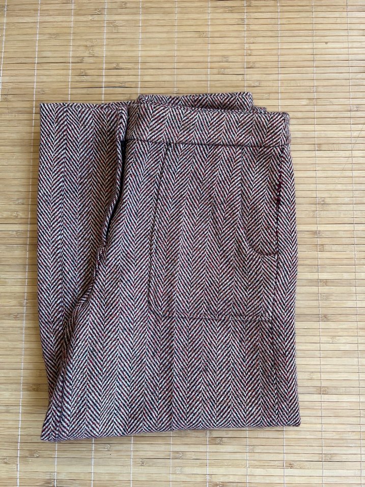 Kahverengi pilili midi kumaş pantolon, rahat kesim ve gri tonlarında, desen içermeyen yumuşak kumaştan üretilmiştir. Sokak stiline uygun rahat bir tasarıma sahiptir.