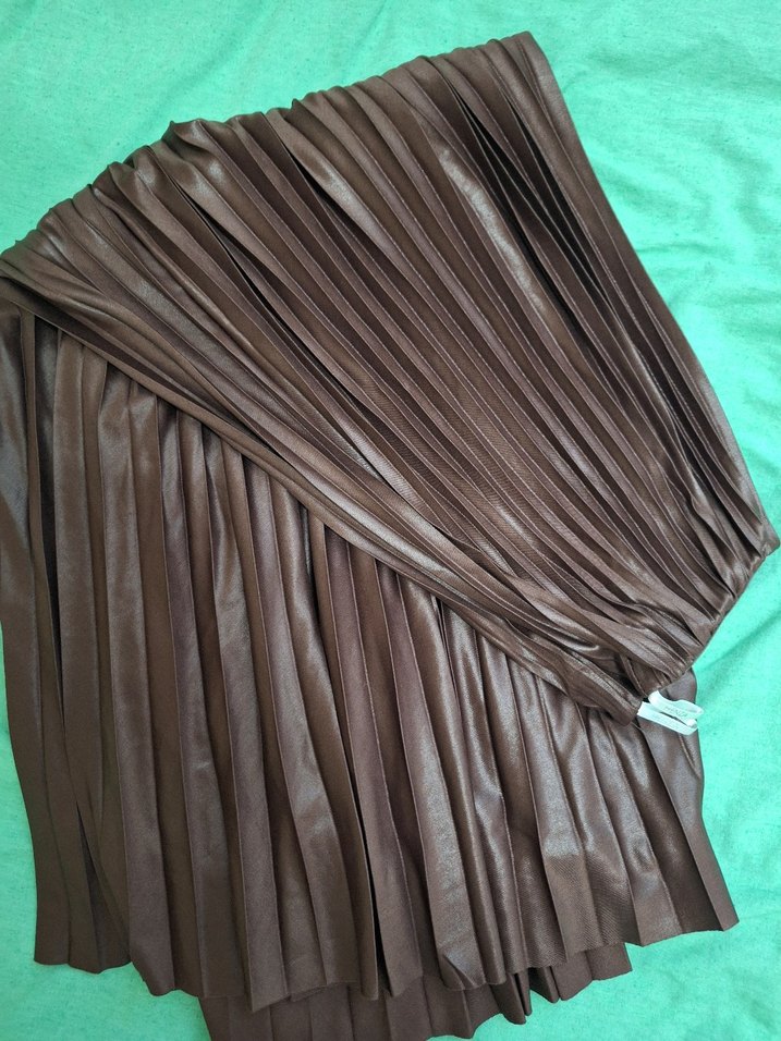 Uzun kahverengi etek, pilili ve vücuda oturan bohem tarzda, yumuşak sentetik kumaştan yapılmıştır. Açık hava kullanımı için avant-garde dokunuşlu. Kullanılmadı