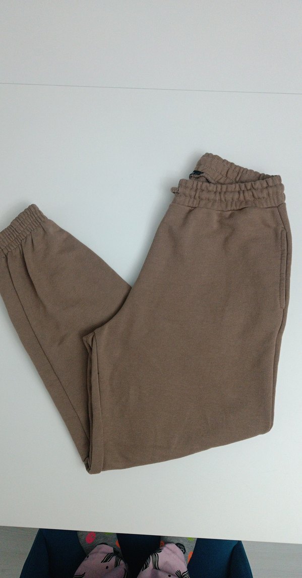 Kadınlar için rahat kesim ve normal boyda, düz kahverengi renkte yumuşak keten kumaştan üretilmiş, günlük kullanım için uygun eşofman altı.