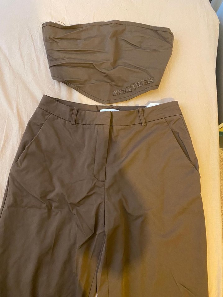 Kadınlar için kahverengi keten pantolon, rahat kesim ve midi boyda. Minimalist sokak stili için deseniz sade, günlük kullanıma uygun.