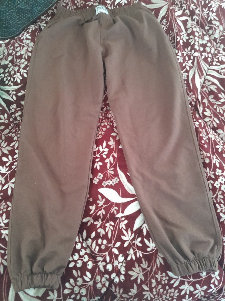 Kadınlar için kahverengi, rahat kesim midi boy kumaş pantolon. Yumuşak sentetik kumaştan, elastik bilek kısmı ile günlük kullanıma uygun şık bir tasarım.