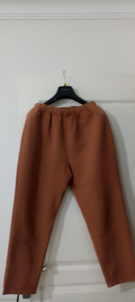 Kadınlar için kahverengi, rahat kesim, midi boy, yumuşak ve sıcak kumaştan günlük kullanıma uygun minimalist tarzda pantolon.