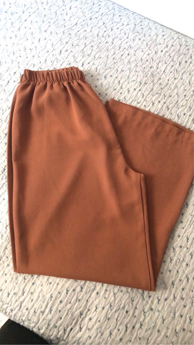 Kadınlar için kahverengi, bol kesim, uzun boy kumaş pantolon. Sadece 1 kere giydim.