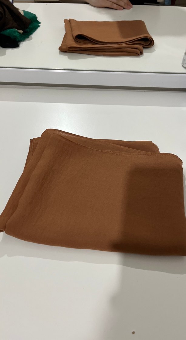 Yumuşak kumaştan, kahverengi, drapeli tasarıma sahip kadın şalı, minimal bohem tarzını yansıtıyor.