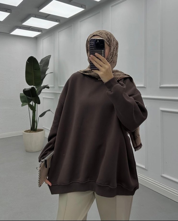 Kadınlar için uzun kollu, salaş kesim, yuvarlak yakalı kahverengi sweatshirt. Yumuşak ve sıcak kumaştan, günlük kullanıma uygun rahat ve şık midi boy. •Üç iplik şardonlu kumaş• •Sweat boyu 73-75 cm• •Göğüs ölçüsü 122-125 cm• •Etiketi yoktur markası Zara değil• •36-38-40-42-44-46 tüm bedenler mevcut•