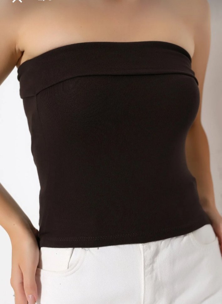 Kahverengi straplez bustiyer, vücuda oturan kesimi ve kolsuz tasarımıyla, yumuşak sentetik kumaştan üretilmiştir. Günlük sokak stili için minimalist ve zahmetsiz şıklık sunar.
