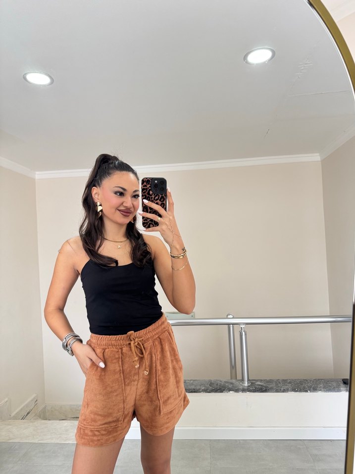 Kadın Kahverengi Süet Bağcıklı Şort