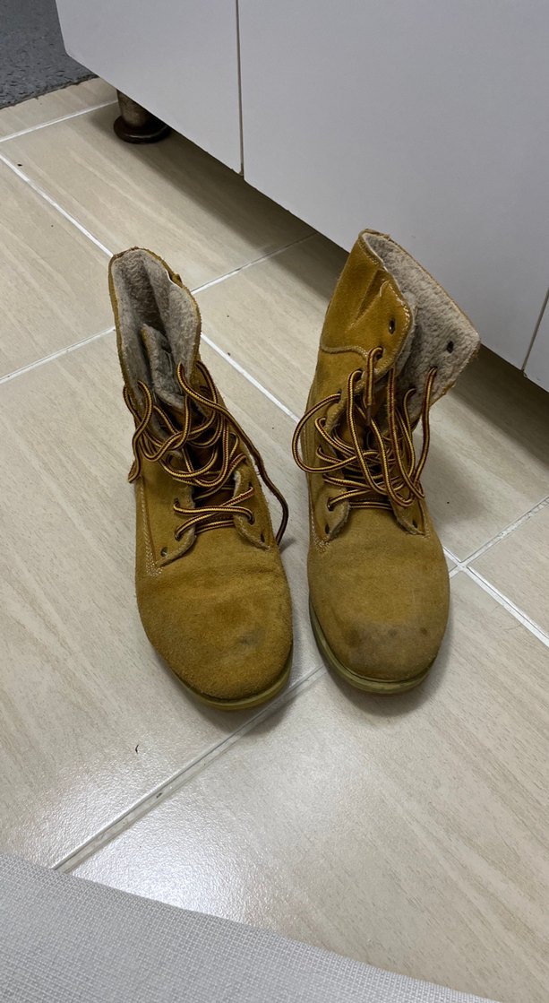 Kadınlar için kahverengi süet malzemeden, bağcıklı ve stiletto topuklu botlar. Günlük kullanıma uygun rahat ve şık tasarım.