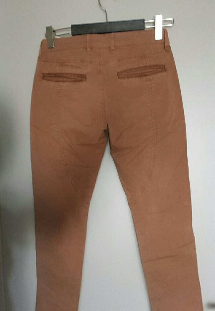 Fermuarlı cepleri ve parlak kahverengi süet kumaşıyla dar kesim, günlük rahat sokak stili için uygun pantolon. ✨