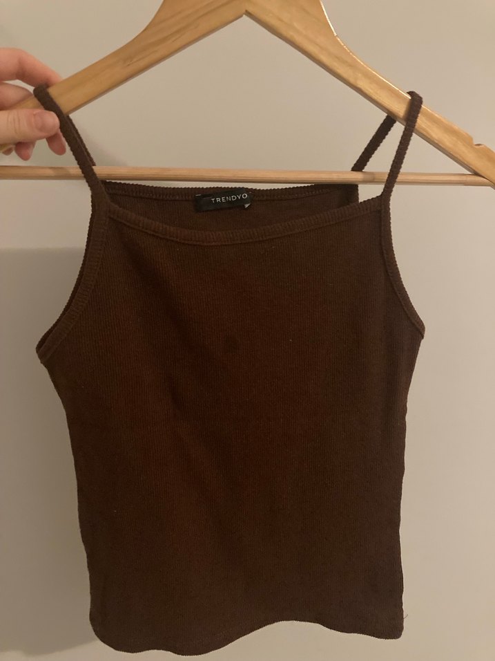 Kahverengi süet kumaştan, yüksek yakalı ve kolsuz, sade ve şık tasarımlı, günlük kullanıma uygun dar kesim kadın atlet.