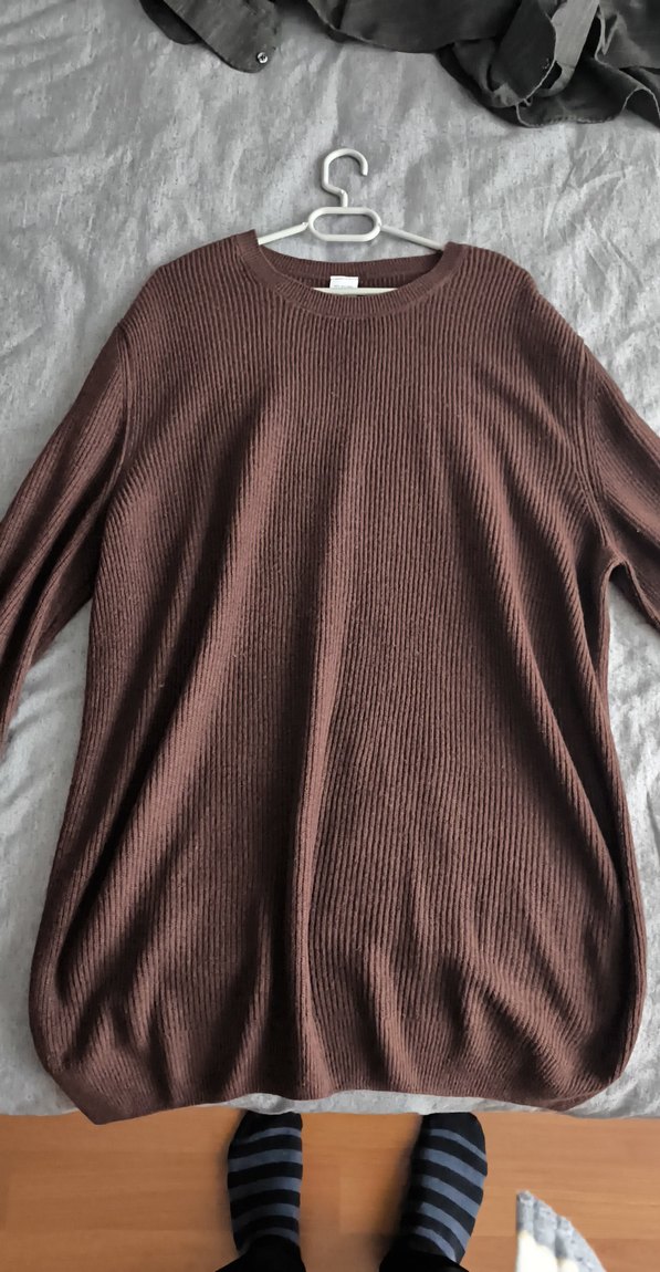 Kadınlar için kahverengi, bisiklet yaka ve uzun kollu, bol kesim triko kazak. Yumuşak keten kumaştan örülmüş, günlük kullanıma uygun rahat ve sade stil sunar.