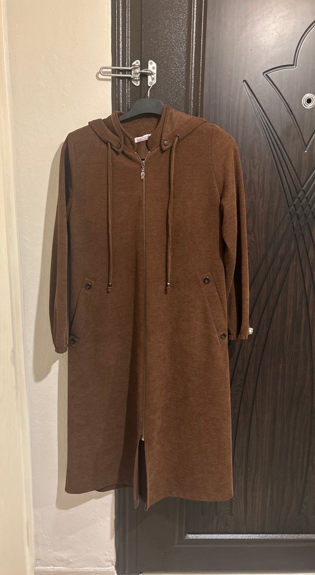 Kadın Kahverengi Uzun Kapüşonlu