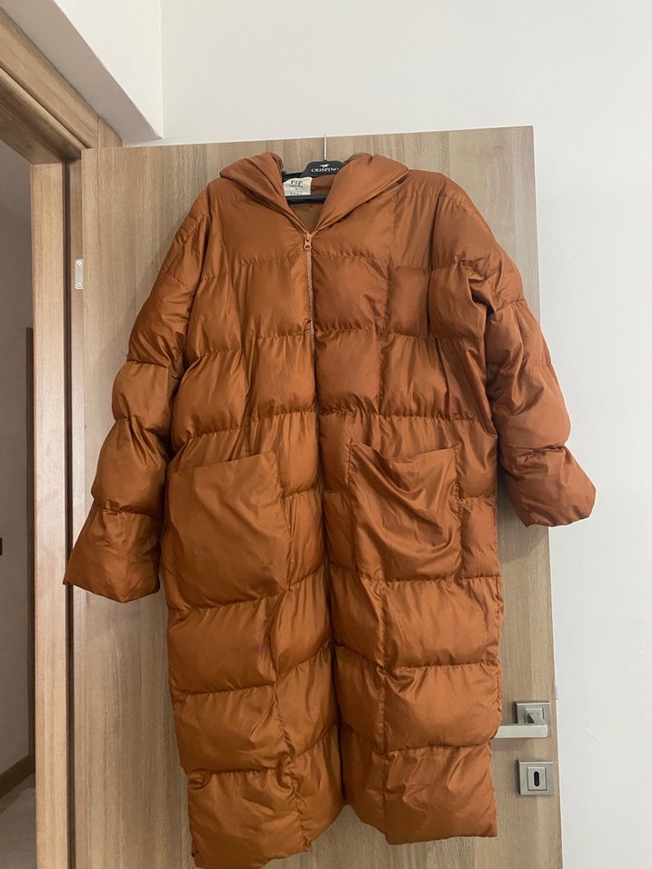 Kadınlar için kahverengi uzun kışlık mont, bol kesim ve fermuarlı ön detaylıdır. Sentetik kumaştan üretilmiş, rahat sokak stili sunar, uzun kollu ve kesimli yakalıdır. Günlük kullanıma uygundur. ❄️ standart beden