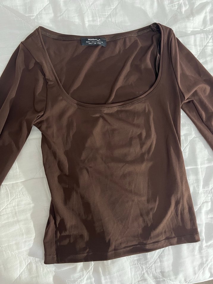 Kadınlar için tek renkli, kahverengi, uzun kollu ve tekne yaka kesime sahip, ipeksi kumaştan yapılmış dar kesim bluz. Günlük sokak stili için idealdir. ✨Rengi daha cok 1.gorseldeki gibi isiktan dolayi farklı cikmis.Hic giyilmedi.