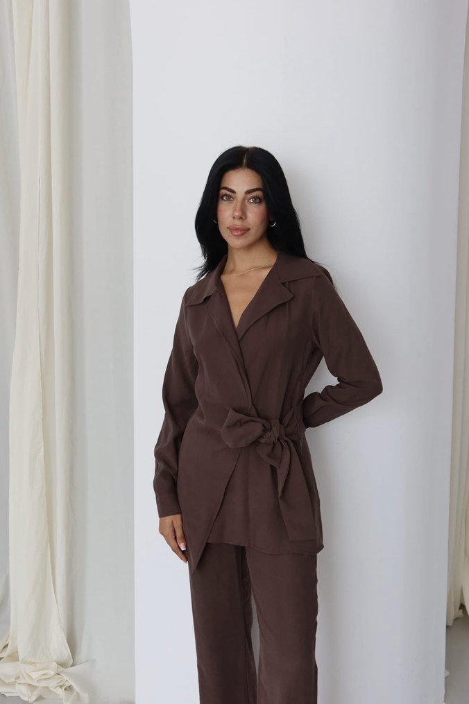 Kadın Kahverengi Uzun Kollu Ofis Takımı