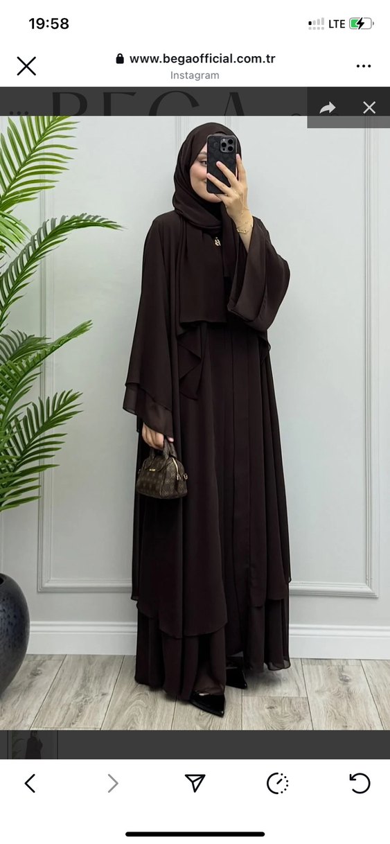 Kadınlar için uzun, salaş kesim ve askılı kollara sahip kahverengi bir abayadır. Minimalist ve klasik tarzda, desensizdir.